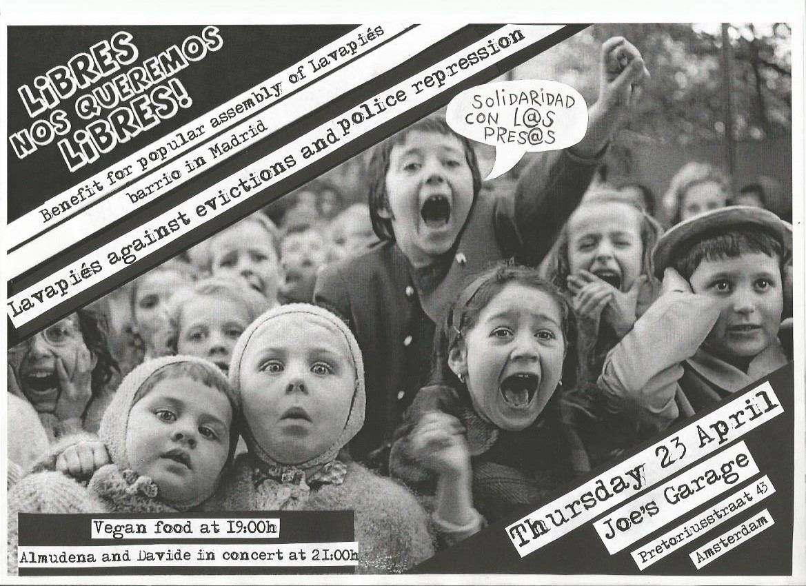 20150423_Benefit_for_Popular_Assembly_of_Lavapies_in_MadridDonderdag 23 april, vanaf 19:00 benefiet voor het buurt assemblly van Lavapiés, Madrid in Joes Garage, Pretoriusstraat 43.