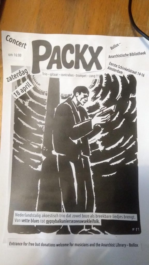 Waar: Bollox – Anarchist Library, Eerste Schinkelstraat 14-16, Amsterdam, Netherlands