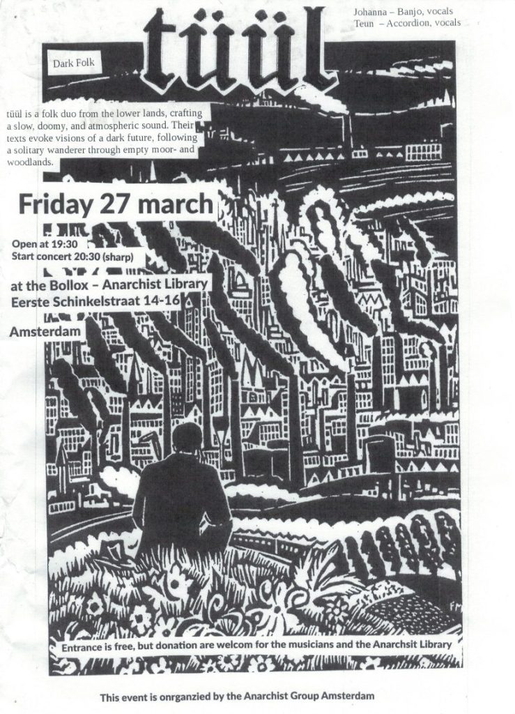 Entrance for free, donations welcome for the musicians and the anarchist library